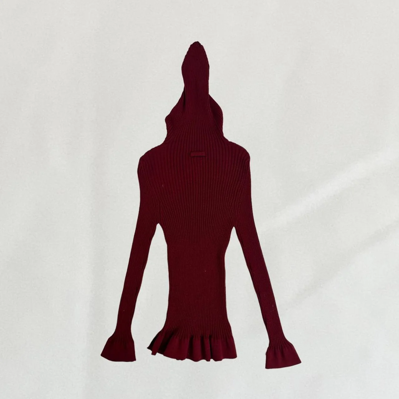 Burgundy/Red Jean Paul Gaultier top with pointed hood and cut out detail