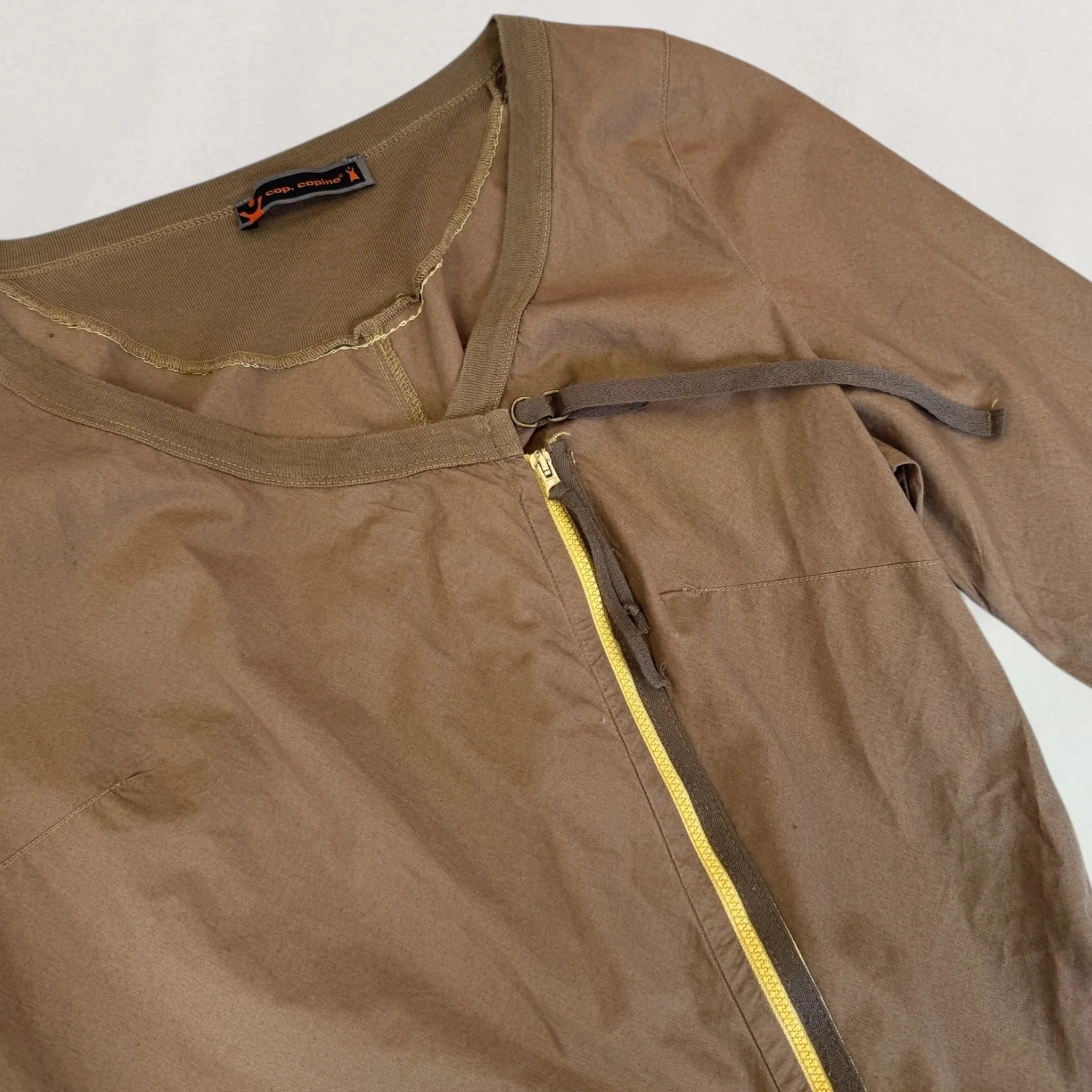 Brown Cop Copine asymmetric zip up top