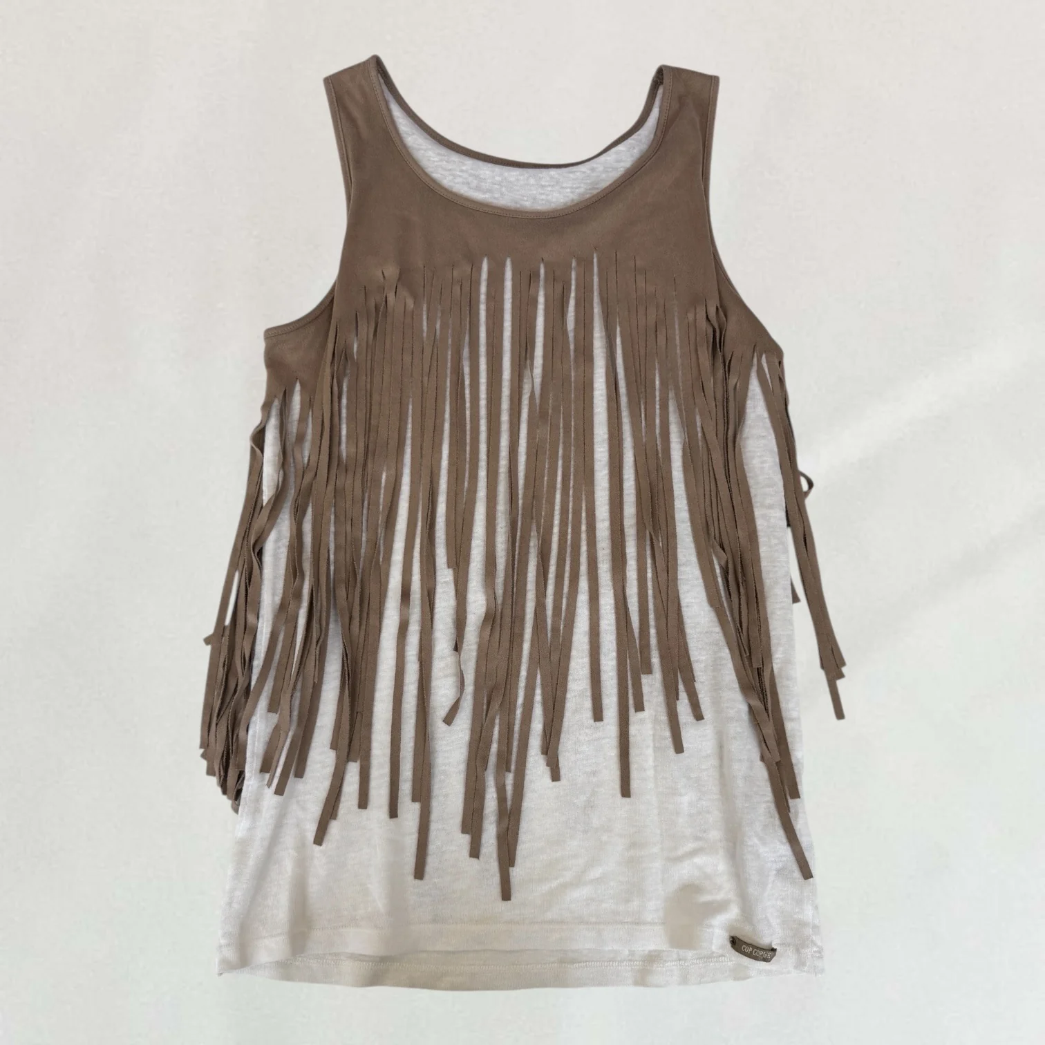 White and brown Cop Copine fringe detail vest