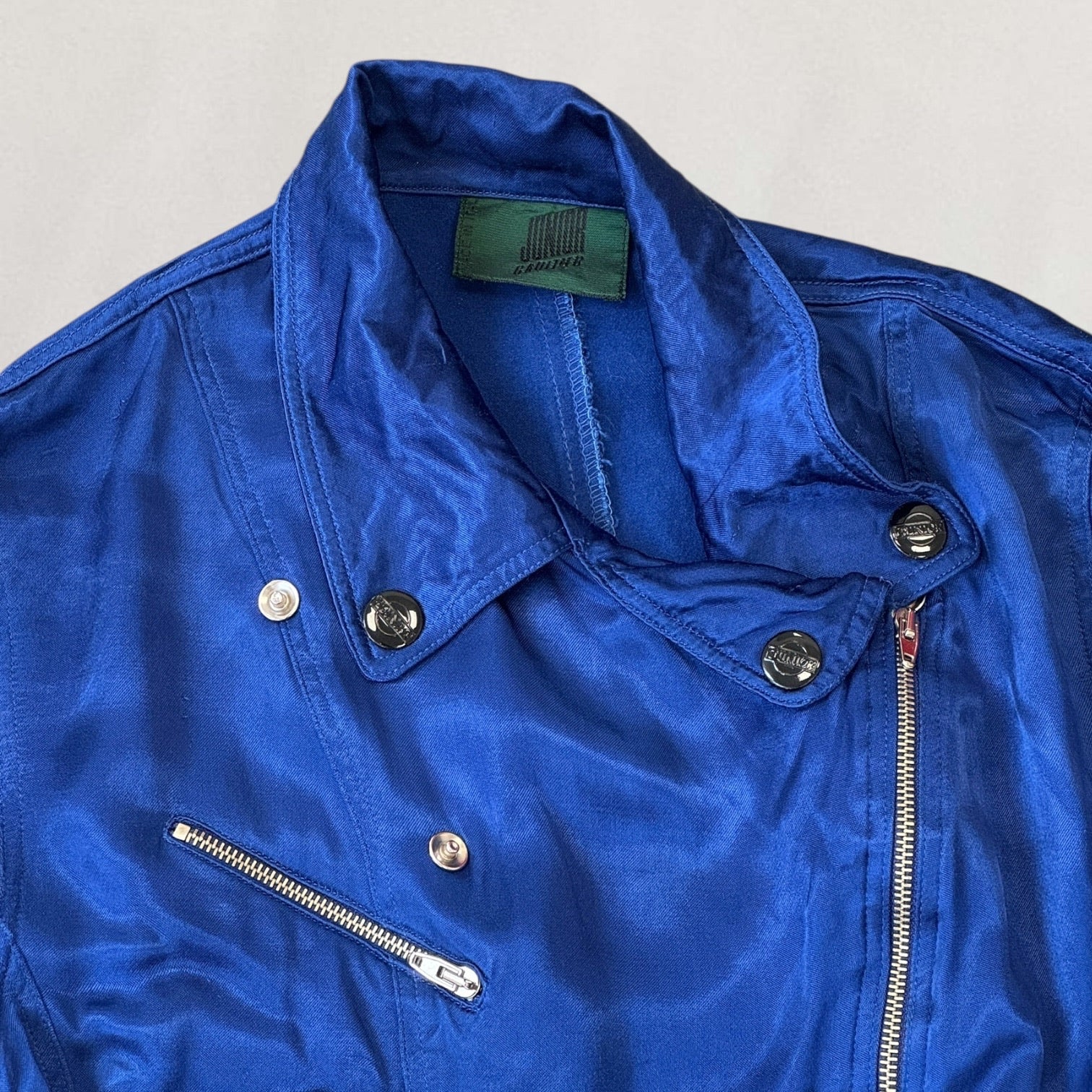 Blue Jean Paul Gaultier satin asymmetric zip up jacket