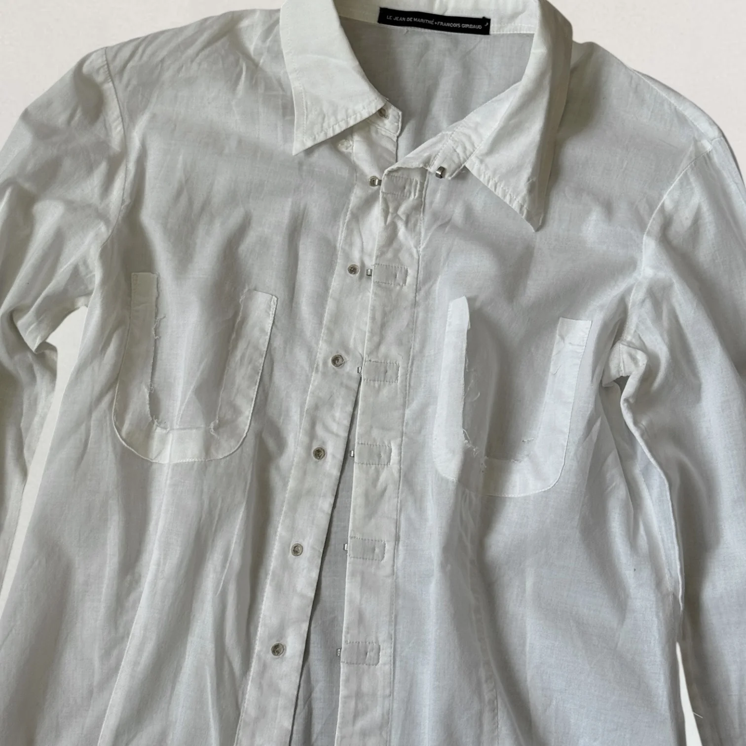 White Marithé + François Girbaud sheer hook and eye shirt